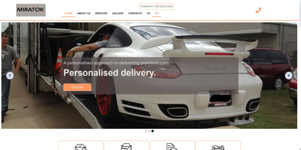Website for a Prague-based car dealership specializing in the import, registration, and rental of vehicles from the U.S. The project included a comprehensive car catalog, a gallery showcasing available vehicles, and a contact form for customer inquiries. Designed with a modern aesthetic, the site features a sophisticated color palette of brown, gray, and white. It is available in three languages
