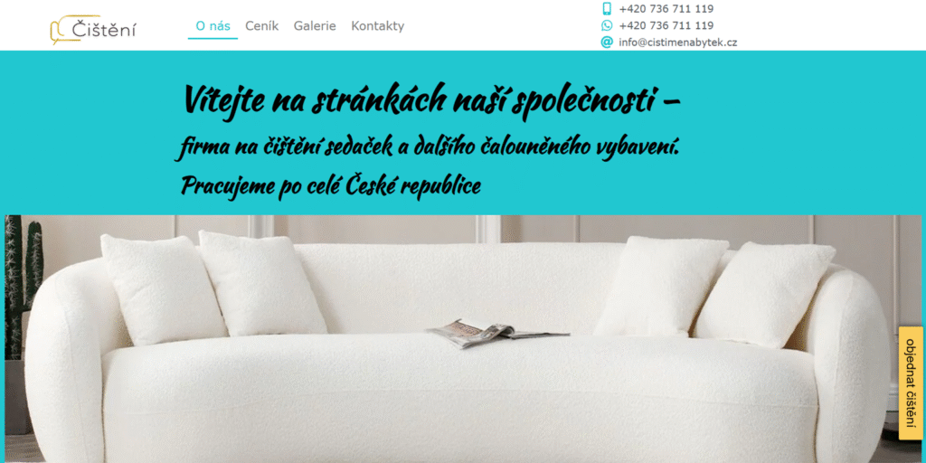 Website development for furniture and household items cleaning services. Order for a simple 3-page website in white, blue and gold colours.